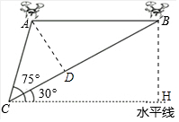 由题意得:∠ACH=75°,∠BCH=30°,AB∥CH,