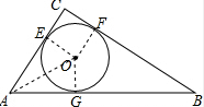 分析 (1)如图连结OE,OF,OG.由⊙O是△ABC的内切圆,∠C=90°,得到四边形CEOF是正方形,根据切线长定理列方程得到结果;