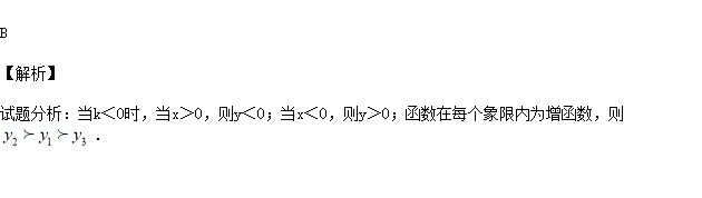 A.y1<y3<y2 B.y3<y1<y2 C.y1<y2<y3 D.y3<y2<y1