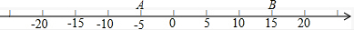 数轴上表示A、B两点:A点位置在-5,B点位置在+15,