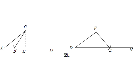 (2)如图1所示:以C或F为圆心,BC的长为半径画弧,分别交AM,DN与B,E,则△ABC与△DEF不全等;