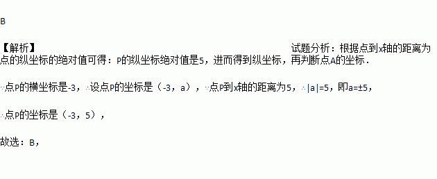 在平面直角坐标系中,点P的横坐标是-3,且点P到x轴的距离为5, 则P的坐标是( )