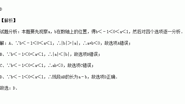 (2015秋•丹江口市期末)如图,在数轴上A、B两点对应的有理数分别是a、b,则下列结论正确的是( )