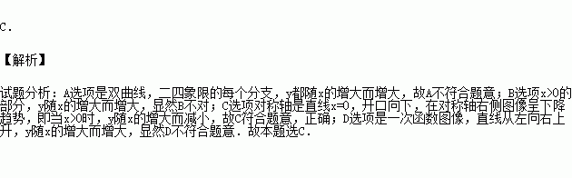 A.开口向上 B.对称轴是y轴 C.都有最高点 D.y随x的增大而增大