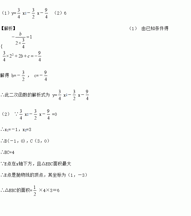 (2)设该图象与x轴交于B、C两点(B点在C点的左边).请在此二次函数x轴下方的图象上确定一点E,使△EBC的面积最大,并求出最大面积。
