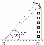 测量计算是日常生活中常见的问题,如图,建筑物BC的屋顶有一根旗杆AB,从地面上D点处观测旗杆顶点A的仰角为50°,观测旗杆底部B点的仰角为45°,(可用的参考数据:sin50°≈0.8,tan50°≈1.2)
