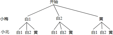 ·ÖÎö ÀûÓÃÊ÷״ͼ·Ö±ðÁоٳöËùÓпÉÄÜ£¬¸ù¾ÝÊ÷״ͼ¿ÉµÃ£º¹²ÓÐ9ÖÖÇé¿ö£¬Æ¹ÅÒÇòÑÕÉ«²»ÏàͬµÄÇé¿öÓÐ4ÖУ¬½ø¶ø¿ÉµÃС±±Ó®µÄ¸ÅÂÊ£®