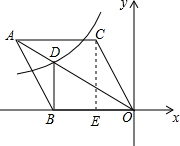 ∵反比例函数y=$\frac{k}{x}$的图象与菱形对角线AO交D点,