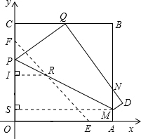 £¨2£©±¾ÌâÐèÏȸù¾Ý£¨1£©µÄÌõ¼þ£¬¿ÉÒÔ·ÖÁ½ÖÖÇé¿ö½øÐнâ´ð£¬µÚÒ»ÖÖÇé¿öµ±0¡Üt¡Ü5ʱ£¬¿ÉÒÔÇó³öSµÄÖµ£¬µÚ¶þÖÖÇé¿öµ±5¡Üt¡Ü8ʱ£¬ÉèEFÓëPM½»µãΪR£¬×÷RI¡ÍyÖᣬMS¡ÍyÖᣬ¿ÉÒÔÖ¤³öRI=FI£¬Óиù¾ÝFI=2PI¿ÉÒÔÖ¤³öFP=PI£¬PI=2PF£¬PF=t-5£¬RI=2£¨t-5£©