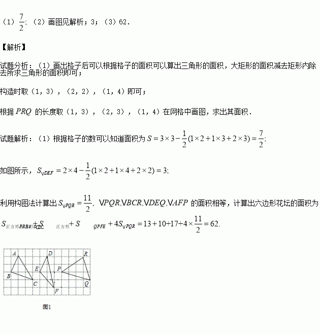 ,请在图2的正方形网格中画出相应的△DEF,并利用构图法求出它的面积.