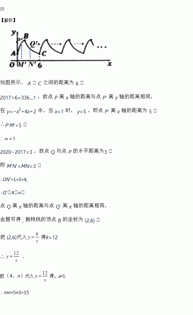的一部分,由点C开始不断重复“A-B-C”的过程,形成一组波浪线.点P(2017,m)与Q(2020,n)均在该波浪线上,