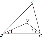 分析:先根据三角形内角和定理求出∠ABC+∠ACB的度数,再根据BO、CO分别平分∠ABC与∠ACB求出∠1+∠2的度数,由三角形内角和定理即可得出∠BOC的度数.