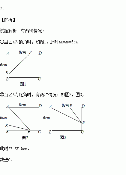 在一张长为8cm,宽为6cm的矩形纸片上,要剪下一个腰长为5cm的等腰三角形(要求:等腰三角形的一个顶点与矩形的顶点A重合,其余的两个顶点都在矩形的边上),这个等腰三角形有( )种剪法.