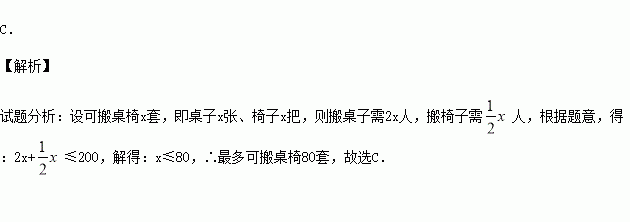 “一方有难,八方支援”,雅安芦山420地震后,某单位为一中学捐赠了一批新桌椅,学校组织初一年级200名学生搬桌椅.规定一人一次搬两把椅子,两人一次搬一张桌子,每人限搬一次,最多可搬桌椅(一桌一椅为一套)的套数为( )