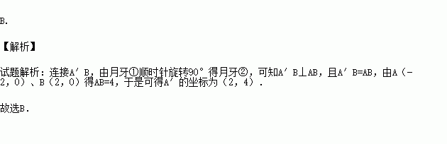 如图所示,在平面直角坐标系中,点A、B的坐标分别为(-2,0)和(2,0).月牙①绕点B顺时针旋转90°得到月牙②,则点A的对应点A′的坐标为( )