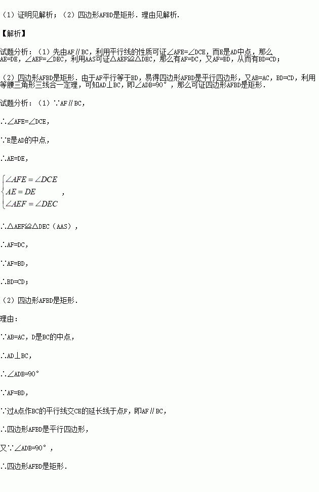 如图,在△ABC中,D是BC边上的一点,E是AD的中点,过A点作BC的平行线交CE的延长线于点F,且AF=BD,连接BF.
