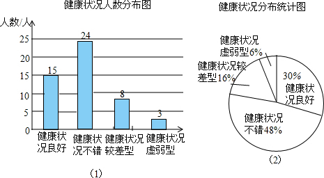 (2)健康状况较差的人数为50-(15+24+3)=8(人),