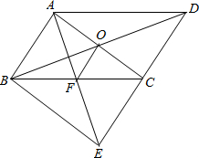 (2)根据“平行四边形的对角线互相平分”的性质推知OF是△ABC的中位线,所以OF∥AB,且OF=