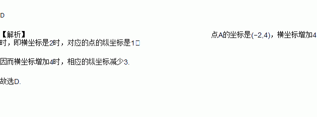 如图,点A是y关于x的函数图象上一点.当点A沿图象运动,横坐标增加4时, 相应的纵坐标( )