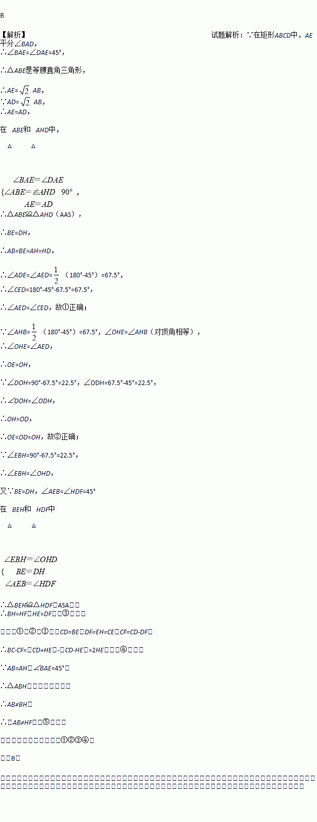 ①∠AED=∠CED;②OE=OD;③BH=HF;④BC-CF=2HE;⑤AB=HF,其中正确的有( )