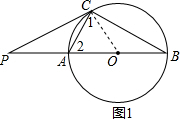 分析 (1)证明:连接OC,由PC是⊙O的切线,得到∠1+∠PCA=90°,由AB是⊙O的直径,得到∠2+∠B=90°,于是得到结论;