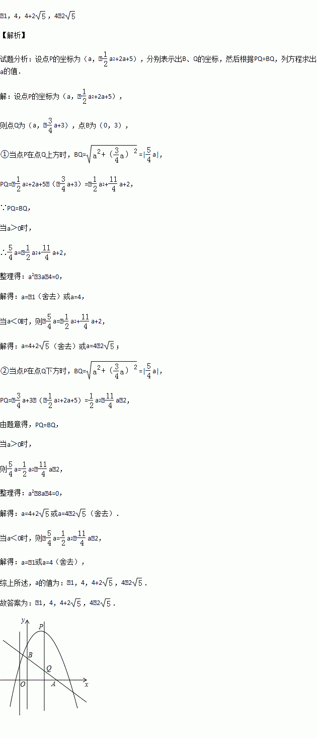 x+3于点Q,则当PQ=BQ时,a的值是 .