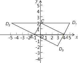 ∵第四个顶点可能为:D1(5,2),D2(-5,2),D3(3,-2),