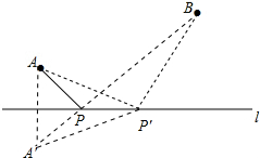 由轴对称的知识可得在P点所走的路线长为A′B,在P′所走的路程上为A′P′+P′B,