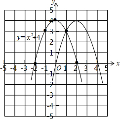 解答 解:(1)如图;抛物线的顶点为(0,4),抛物线与x轴的交点为(-2,0)、(2,0);