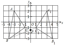 (4)如图,连接BC1与y轴的交点为P,点P即为所求. ![]()