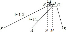 分析 过点D、E向下底引垂线,得到两个直角三角形,利用三角函数分别求得增加的下底宽和高的相应线段.所需的土方=增加横截面的面积×长度1000.