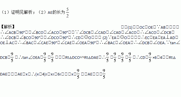 (1)求证:CD是⊙O的切线;