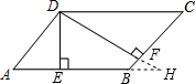 分析:延长DF、AB,相交于点H,根据直角三角形两锐角互余求出∠H=30°,根据直角三角形30°角所对的直角边等于斜边的一半求出BH,再求出DE,然后求出∠A=∠CBH=60°,再求出AD、AE,然后求出AB,最后根据平行四边形的周长的定义和面积公式列式计算即可得解.