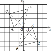 解:(1)由图形得:B(-1,-4),C(3,-3),得到B1(1,4),C1(-3,3);