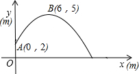 5.在体育测试时,初三(2)班的高个子张成同学推铅球,已知铅球所经过的路线是抛物线y=ax2+bx+c的一部分(如图所示),且知铅球出手处A点的坐标为(0,2)(单位:m,后同),铅球路线中最高处B点的坐标为(6,5)
