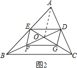 (2)矩形.连接AO并延长交BC于点M,先由三角形中线的性质得出M为BC的中点,当AB=AC时,由等腰三角形三线合一的性质得出AM⊥BC,再由三角形中位线的性质及平行线的性质得出EF⊥FG,从而证明?EFGH是矩形.