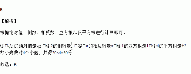 下面为张小亮的答卷,他的得分应是( )
