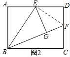 (2)①如图2,连接EF,由ABCD为矩形,得到两组对边相等,四个角为直角,再由E为AD中点,得到AE=DE,由折叠的性质得到BG=AB,EG=AE=ED,且∠EGB=∠A=90°,利用HL得到直角三角形EFG与直角三角形EDF全等,利用全等三角形对应边相等得到DF=FG,由BF=BG+GF,等量代换即可得证;
