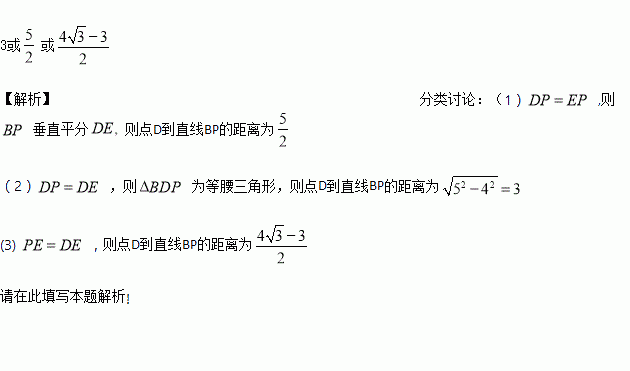 <60°),得到△DBE,连接DP、EP,则当△DPE为等腰三角形时,点D到直线BP的距离为__________.