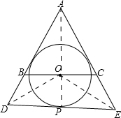 ∵过点P的圆O切线分别和AB,AC的延长线相交于点D,E,