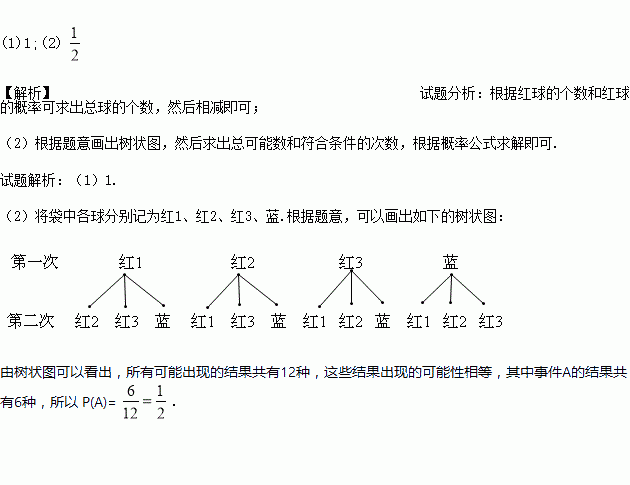 在一个不透明的袋子中,装有除颜色外其余均相同的红、蓝两种球,已知其中红球有3个,且从中任意摸出一个是红球的概率为0.75.