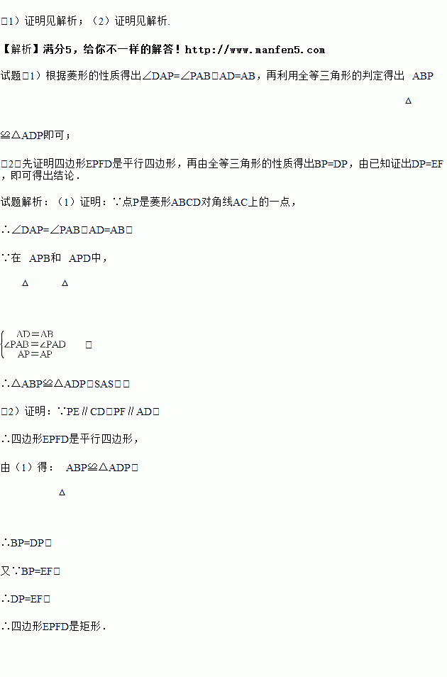 (2)若BP=EF,求证:四边形EPFD是矩形.