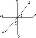 如图,直线PQ⊥MN,垂足为O,AB是过点O的直线,∠1=50°,则∠2的度数为(  )