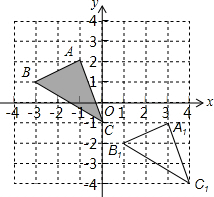 (2)若将△ABC向右平移4个单位再向下平移3个单位得到△A1B1C1,则B点的对应点B1的坐标是