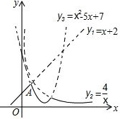 分析 可先画出y与x的函数图象(如图中实线所示),结合图象可知y的最大值就是点A的纵坐标,只需求出直线y=x+2与抛物线y=x2-5x+7的交点A的坐标即可.