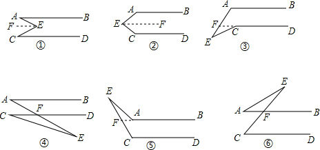 分析:①过E作EF∥AB,推出AB∥EF∥CD,根据平行线的性质得出∠A=∠AEF,∠C=∠CEF,根据∠AEC=∠AEF+∠CEF推出即可;
