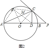 分析 (1)连接OC,根据已知证得∠POC=∠PCD,由∠POC+∠OCD=90°.证得∠PCD+∠OCD=90°,即∠OCP=90°,即可证得CP为⊙O的切线;