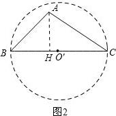 解答:解:(1)作△ABC的外接圆⊙O,连接OA、OB,如图1.