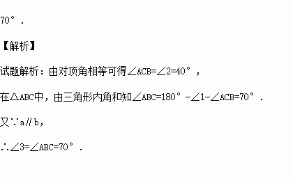 如图,已知AB∥CD,∠A=70°,则∠1的度数是()