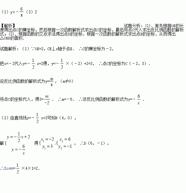 x+2分别与x、y轴交于点B、A,与反比例函数的图象分别交于点C、D,CE⊥x轴于点E,OE=2.